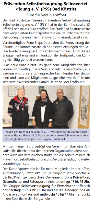 Artikel in der Ostthüringer Zeitung